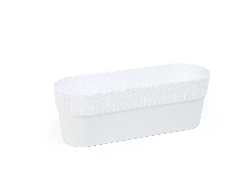 Plastový truhlík ve tvaru oválu s kraječkovým okrajem z kolekce Bella.